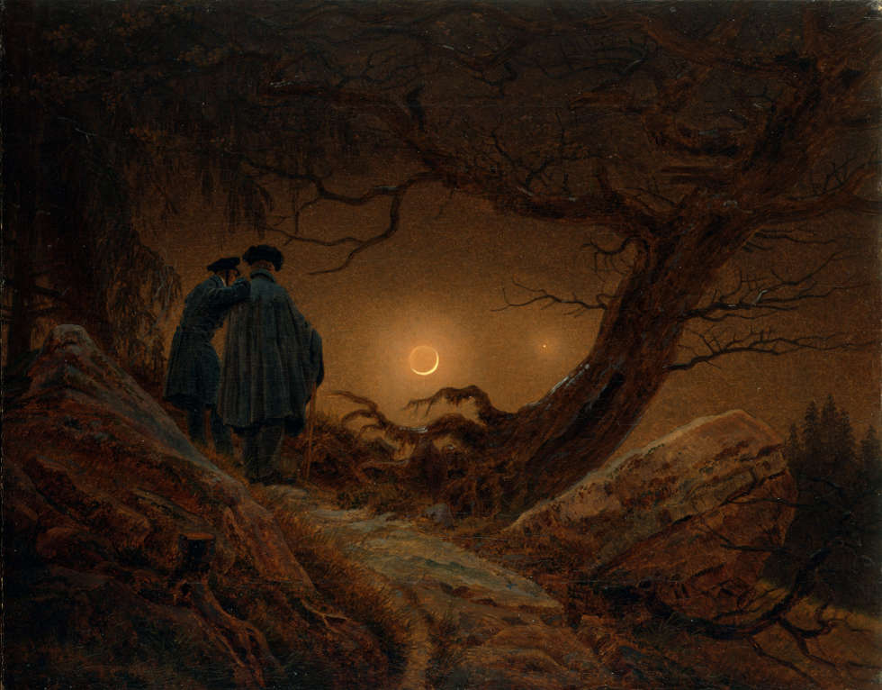 Caspar David Friedrich Zwei Maenner in Betrachtung des Mondes (Kunsthalle Dresden)