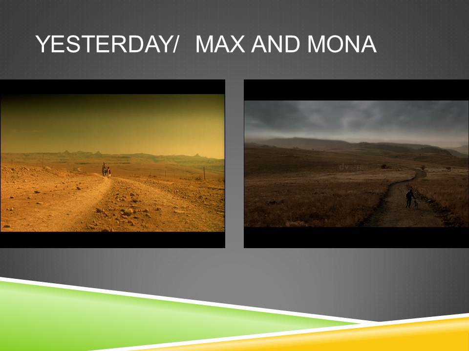 Le réalisateur cherche ainsi à souligner que les effets destructeurs des migrations de travail sur les familles persistent. L’opposition des couleurs marque le contraste, la différence, la rupture entre les deux environnements. Dans Yesterday, cependant, la campagne est tout aussi hostile que la mine.
