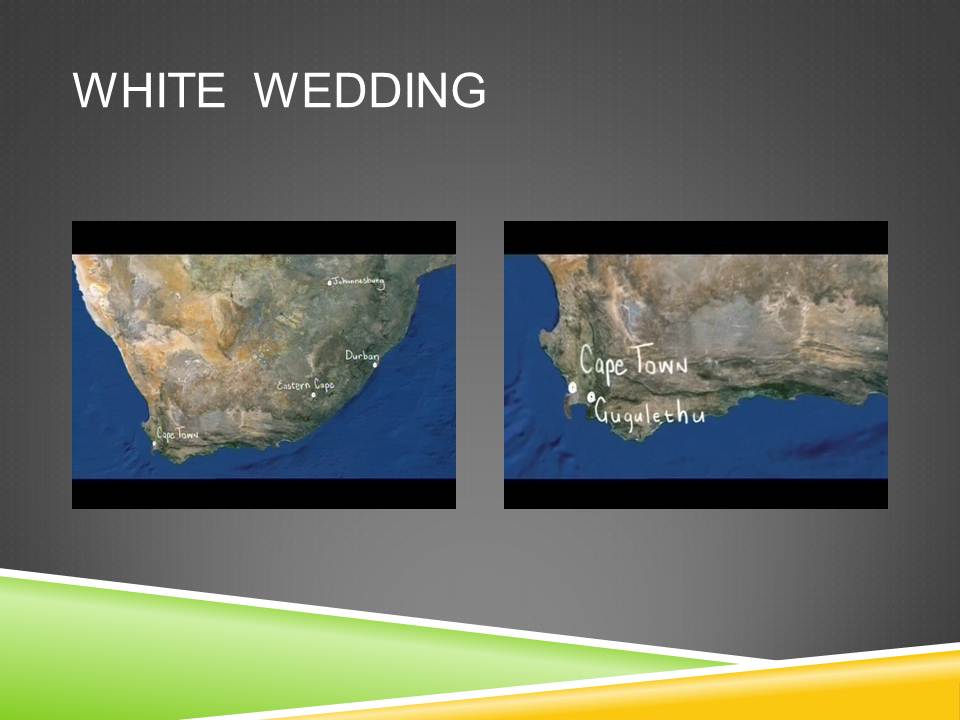 Plus tard dans le film, un cinquième espace sera identifié, par le même recours à la carte du pays, il s’agit de Gugulethu, l’un des townships du Cap.