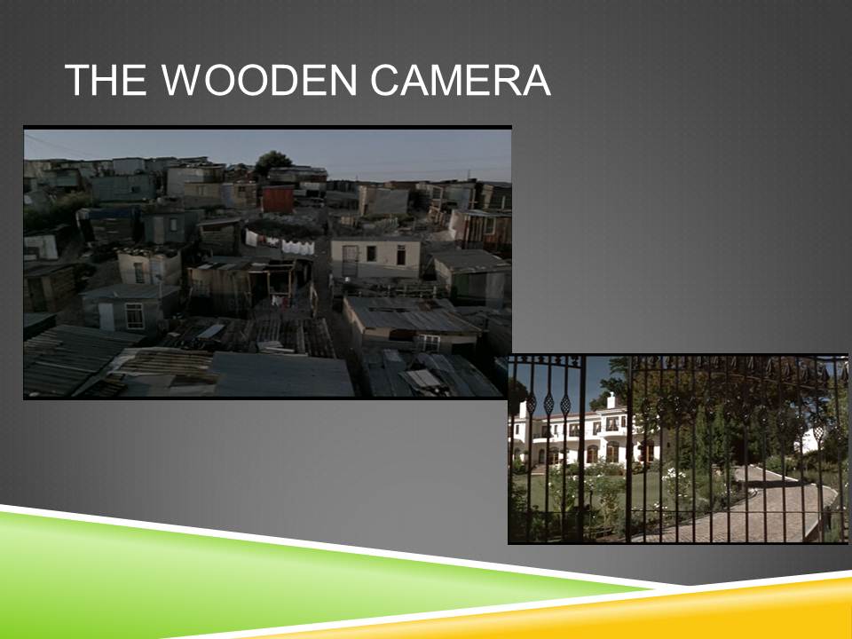 Je vais m’appuyer sur le film le plus schématique quant aux rapports entre espaces urbains, The Wooden Camera. Le film raconte l’histoire de l’amitié naissante entre Madiba, un jeune garçon noir pauvre, du township de Khayelitsha, près du Cap, et Estelle, jeune fille blanche très aisée, qui vit à Constantia, l’un des suburbs les plus huppés de la ville. Les deux adolescents, curieux de voir le monde et de s’affranchir des logiques d’apartheid rabâchées par leurs parents, quittent sans arrêt leur quartier d’origine pour se retrouver. Madiba prend le train de banlieue, Estelle son vélo.