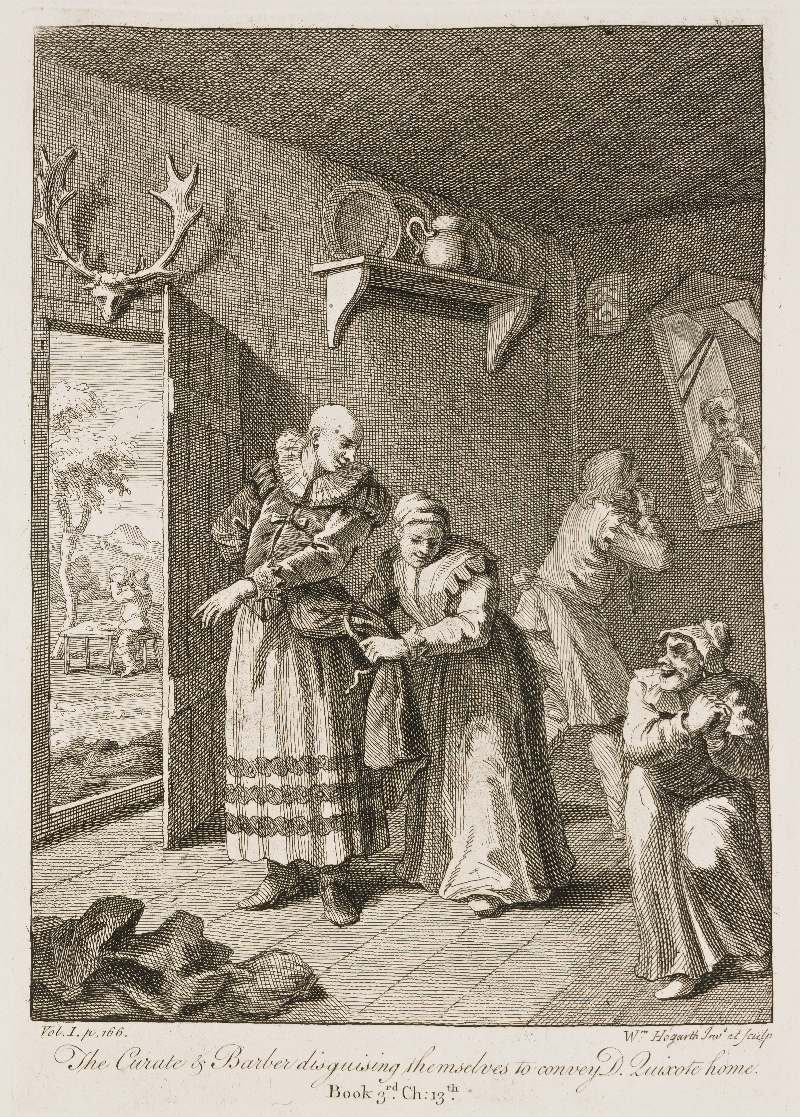 The Curate and Barber disguising themselves, to convey Don Quixote home.