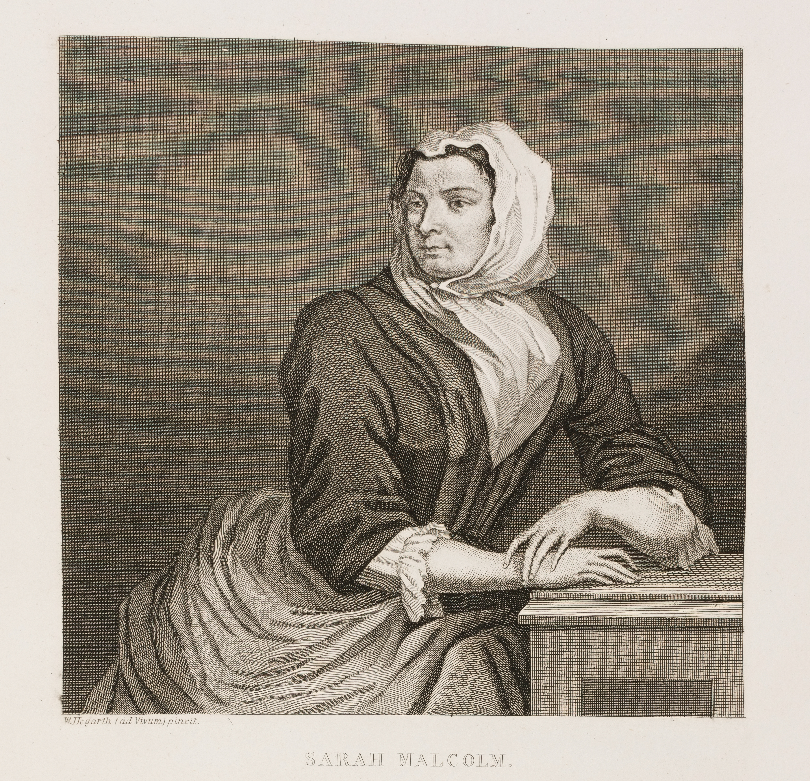 On Sunday Morning, Feb. 4, 1732-3, Mrs. Lydia Duncombe, aged 80, Elizabeth Harrison, her companion, aged 60, were found strangled, and Anne Price, her maid, aged 17, with her throat cut, in their beds, at the said Mrs. Duncombe's apartments in Tanfield Court, in the Temple. Sarah Malcolm, a chare-woman, was apprehended the same evening, on the information of Mr. Kerrol, who had chambers on the same staircase, and had found some bloody linen under his bed, and a silver tankard in his close-stool, which she had hid there. A Verdict of "Wilful Murder" was found by the Coroner's Inquest against Sarah Malcolm ; who was executed on the 7th of March. She put on red, to sit to Hogarth for her picture, two days before her execution.
