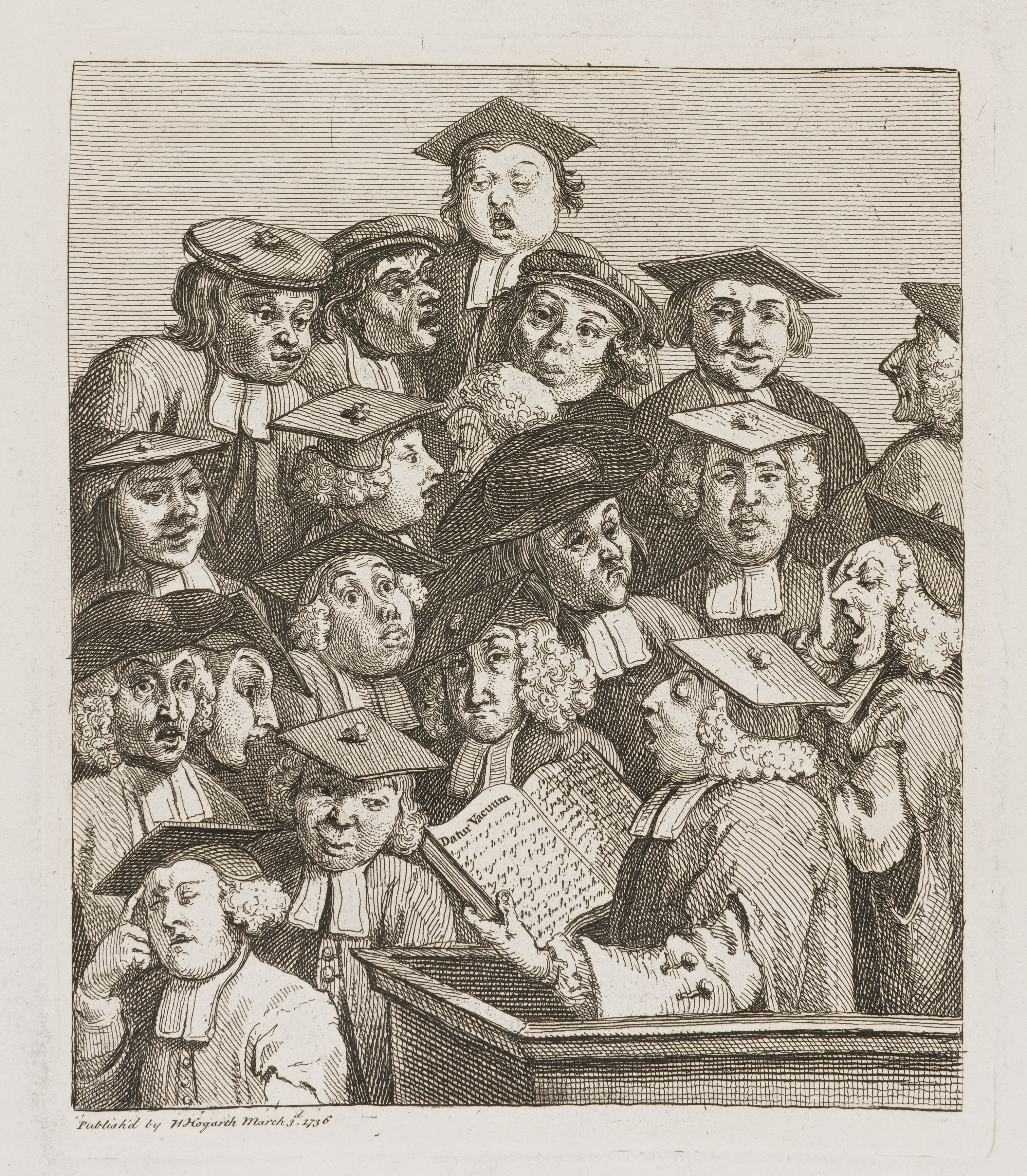 We are here presented with a motley assemblage of Graduates and Under-graduates, profoundly attending to a Philosophical Lecture, the subject of which is a Vacuum (or space unoccupied by another). Dulness and stupidity seem to characterize the drowsy Audience.