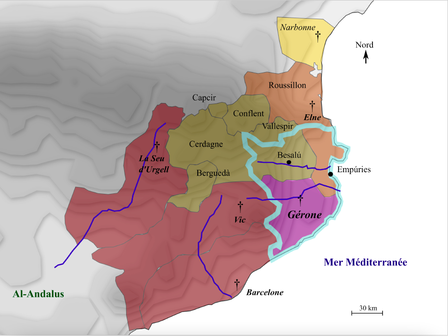 Matthieu Bayle, Gérone, une cité épiscopale clouée sur l'échiquier politique des princes marémontains (878-1010), La Clé des Langues [en ligne], Lyon, ENS de LYON/DGESCO (ISSN 2107-7029), novembre 2025. Consulté le 17/12/2025. URL: https://cle.ens-lyon.fr/espagnol/civilisation/histoire-espagnole/histoire-medievale/gerone-une-cite-episcopale-clouee-sur-lechiquier-politique-des-princes-maremontains-878-1010