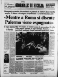 Pour mieux saisir la portée de ces assassinats, il est nécessaire de les replacer dans leur contexte politique. Au sortir de la décennie des « années de plomb », caractérisée par le déchaînement de la violence politique de tout bord, la classe politique entretient encore un rapport problématique à la violence, et plus spécifiquement à la violence mafieuse. La plupart des membres de la majorité démocrate-chrétienne, dont le maire de Palerme, nient encore farouchement l’existence de la mafia. La parole politique est donc en décalage avec la réalité vécue par les Palermitains. Excédée par l’inertie des gouvernants face au déchaînement de la violence mafieuse, une frange de la société palermitaine conteste fortement les représentants politiques lors des funérailles du préfet Dalla Chiesa. Dans un tel moment de tension, la presse nationale et locale font le choix de médiatiser largement la crise de violence mafieuse. Si certains quotidiens véhiculent la langue de bois du parti au pouvoir((De 1946 à 1992, la DC a fait partie des majorités parlementaires. Elle a dirigé presque tous les gouvernements, exception faite des années 1981 à 1987. En Sicile, la DC avait la main mise sur toutes les institutions ce qui lui a permis de consolider le rapport clientéliste qu’elle entretenait avec la mafia, qui lui apportait fidèlement des votes à chaque élection. En échange de cet appui électoral, la mafia devient participe à l’opération de spéculation immobilière appelée le « Sac immobilier de Palerme » (à la fin des années 1950) qui lui permet de blanchir l’argent gagné grâce au trafic de stupéfiants et d’infiltrer les structures du pouvoir local, renforçant considérablement son influence économique sur la région. Voir Matard-Bonucci Marie-Anne, Histoire de la mafia, Bruxelles, Complexe, 1994, p. 197-209.)) – largement compromis au niveau local avec la mafia –, d’autres décident d’exprimer l’exaspération d’une partie des Palermitains. Le clivage de plus en plus net entre les partisans du pouvoir en place et l’opposition permet à la presse de devenir un protagoniste du débat public. On peut supposer que cette médiatisation s’avère déterminante puisqu’à la fin de l’année 1982, on voit émerger les premières initiatives antimafia en Sicile et en Italie.