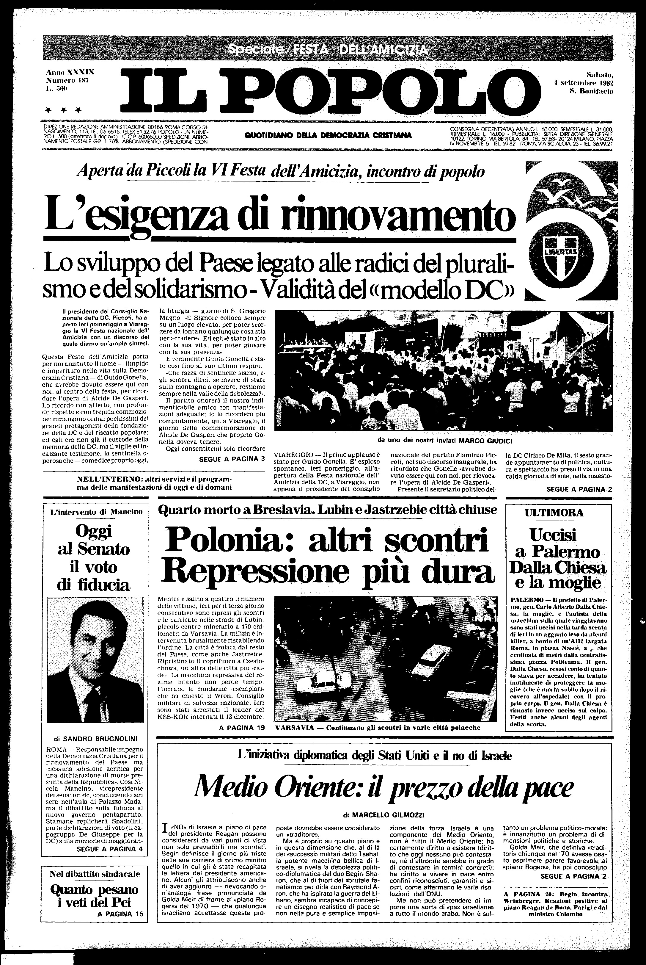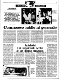 De même, nous pouvons remarquer que le 4 septembre, le Popolo ne consacre qu'un tout petit encadré sur la droite à la mort de Dalla Chiesa alors que dans tous les autres quotidiens, la nouvelle fait les gros titres.