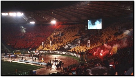 Chorégraphie du virage Sud pendant le derby A.S. Roma – S.S. Lazio de 2001