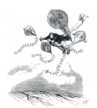 Figura 12. GRANDVILLE, Locomotions aériennes (incisione), op. cit., p. 132.